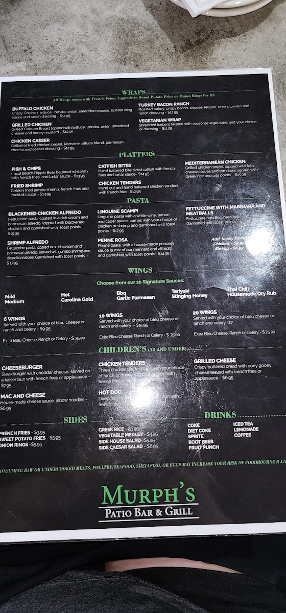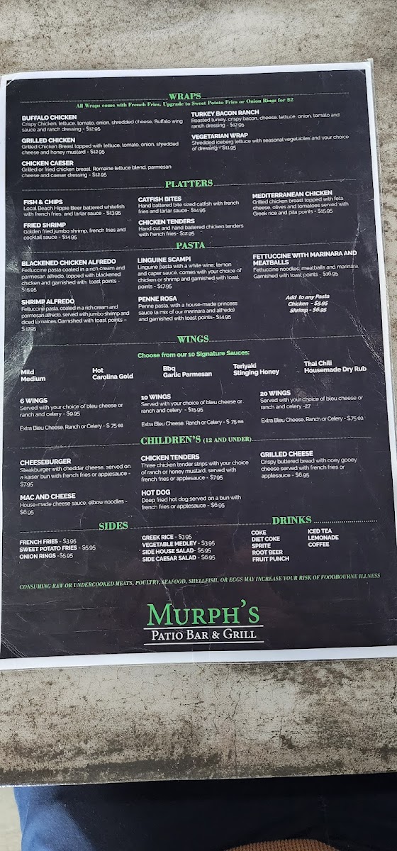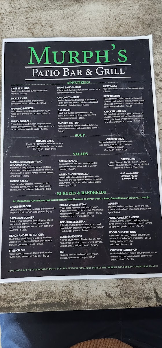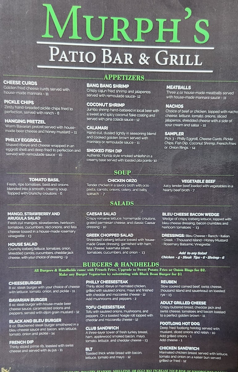 Welcome to Murph's Patio Bar & Grill, a charming eatery nestled in DeLand, FL. This inviting location has become a favorite hangout for locals, drawing them in after long workdays with its promising menu and warm service.